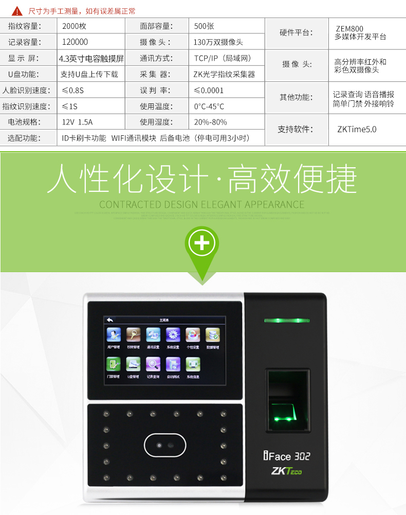 iface302人臉混合識別考勤機